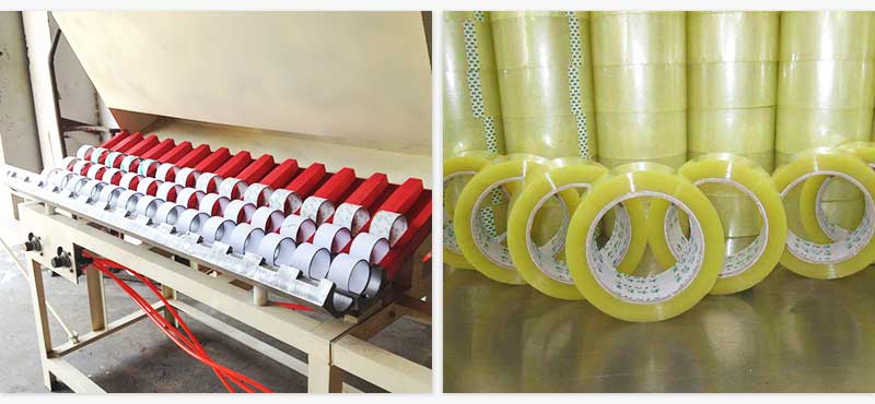 1,從重繞軸上取下膠帶,同時將紙芯放在軸上;